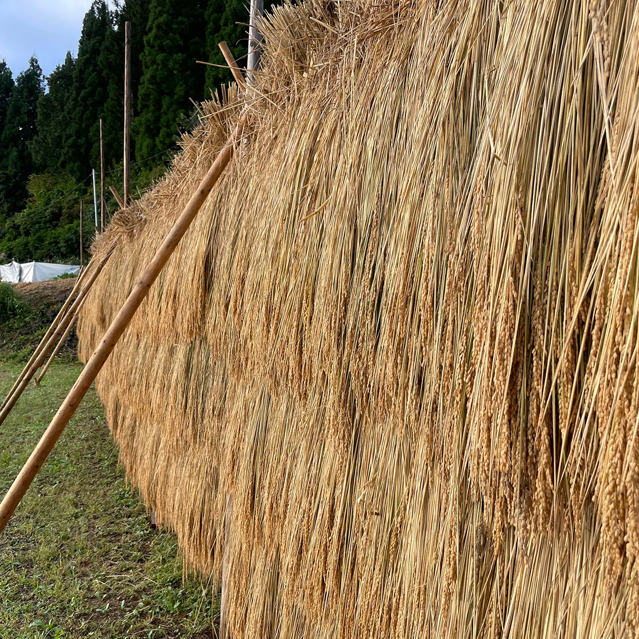 昔ながらの天日干し(稲架がけ)によって、じっくりと自然乾燥させています。